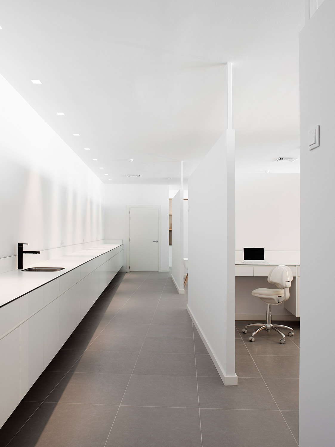 Susanna Cots cuenta con la complicidad, una vez más, de dos de sus elementos esenciales: la luz y el color blanco. La luz natural aporta calma y confort visual al paciente, y un estudio lumínico artificial, discreto y muy agradable, le guía por el espacio. Como siempre, el color blanco es el protagonista indiscutible y refuerza el sello personal de la interiorista.