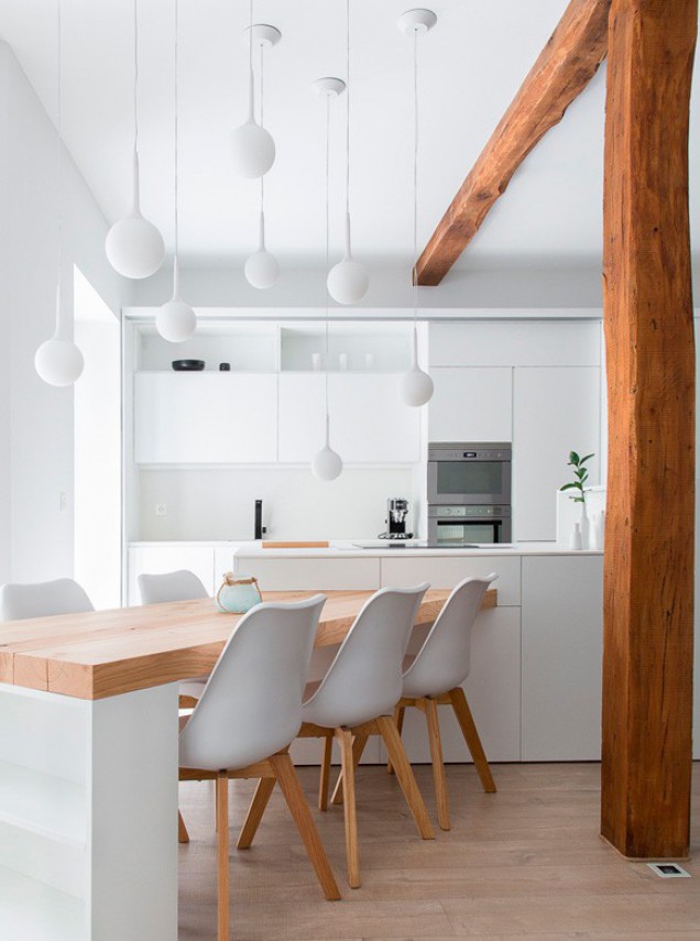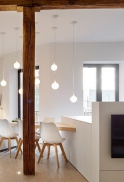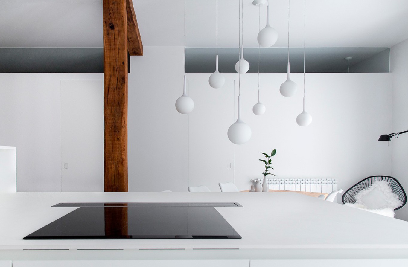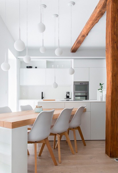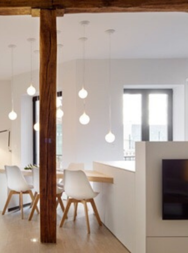 The character of this 80 m2 urban dwelling located on a property with a history of more than 100 years is defined by the recovery of an item hidden by the passage of time: the central wooden T after which it is named and which frames the kitchen and living room to endow the open-plan design with amplitude.