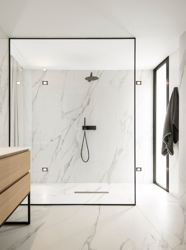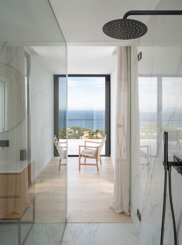 The shower, with a fixed glass wall, offers a unique experience: bathing with the sea as your travelling companion. The master bedroom, open and minimalist, allows the horizon to become the absolute protagonist.