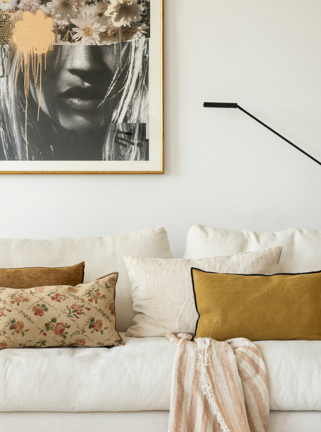 Behind the wooden panels, a courtesy bathroom is hidden, combining, as usual in the interior designer's designs, functionality and design.