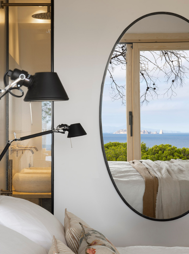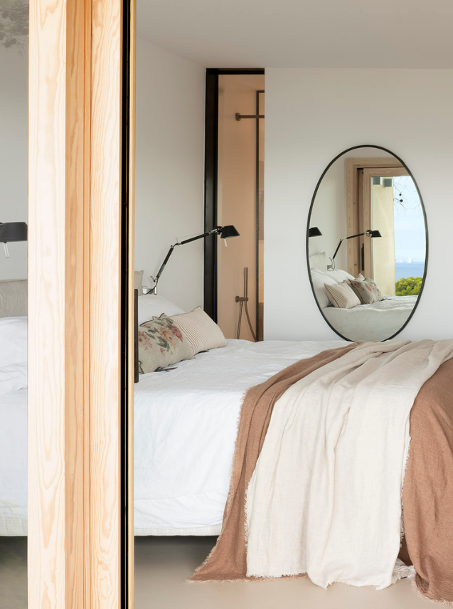 Each of the 4 bedrooms, 2 suites and 2 doubles, also seek direct communication with the exterior and the blue of the sea. The master suite stands out, where in addition, from the shower, two slits open up, one to the sea and the other to a skylight.