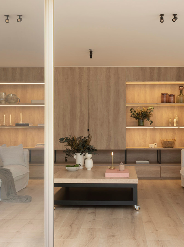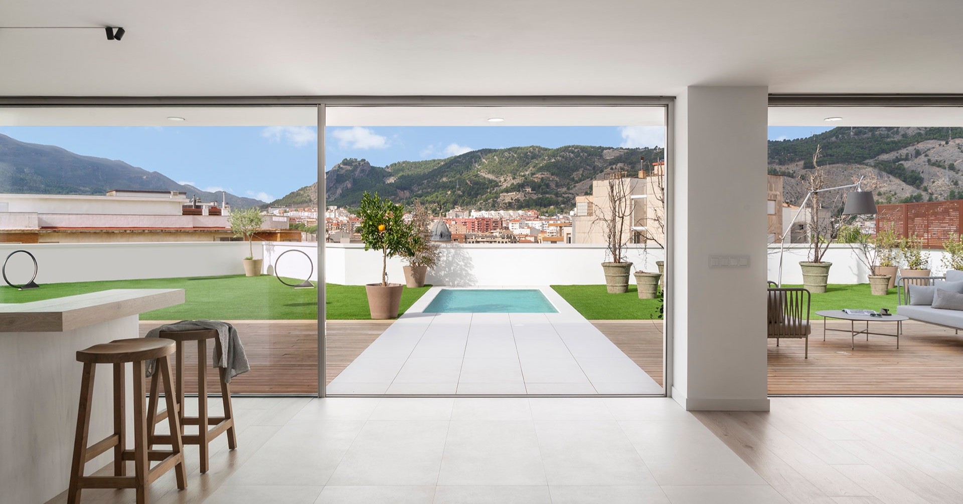We designed this 350 m² top floor apartment in the Community of Valencia, leaving out the oblique walls and taking away the partitions that hyperfragmented the light in portions that naturally want to be as one. We wanted to hear the natural steps our feet would take if nothing got in the way of our desire to move outside.