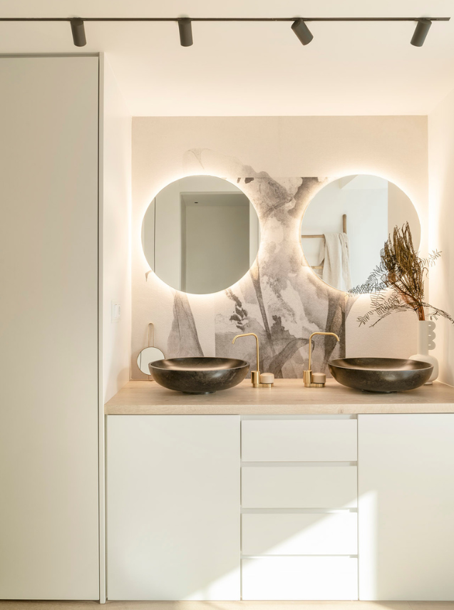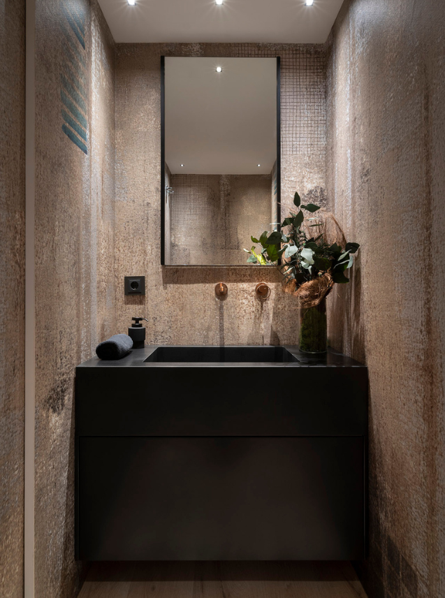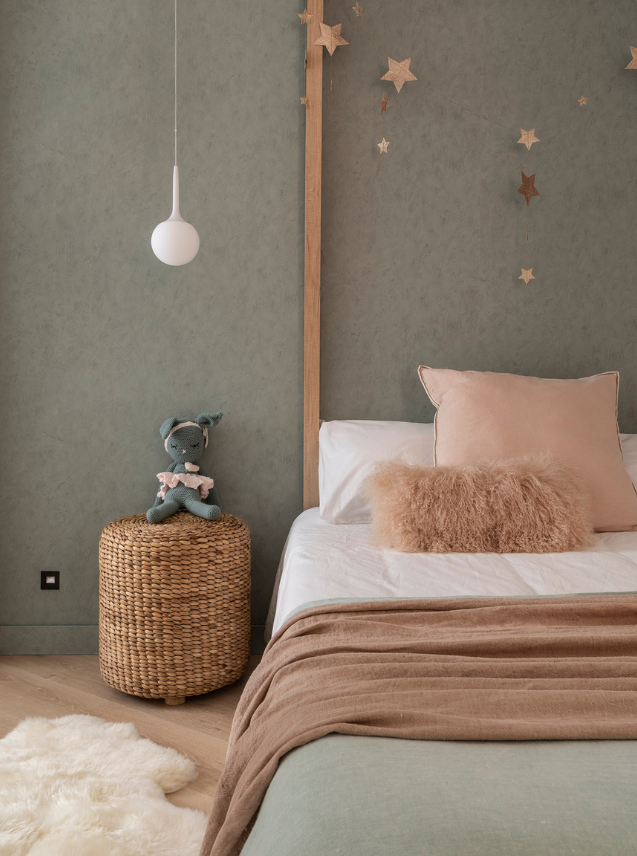 From the children’s rooms, with their timeless yet bold colours, through to the different types of wallpaper in the girls’ bathroom and the floral details on the bathroom dresser in the master suite, to the author’s design that we find in the guest bathroom.