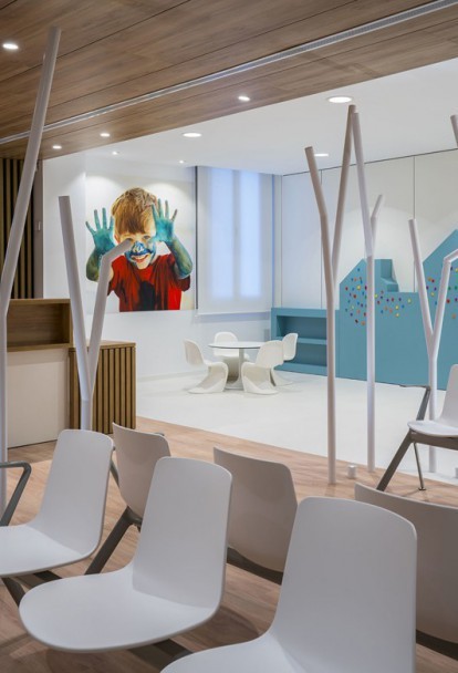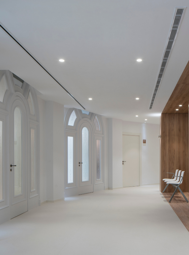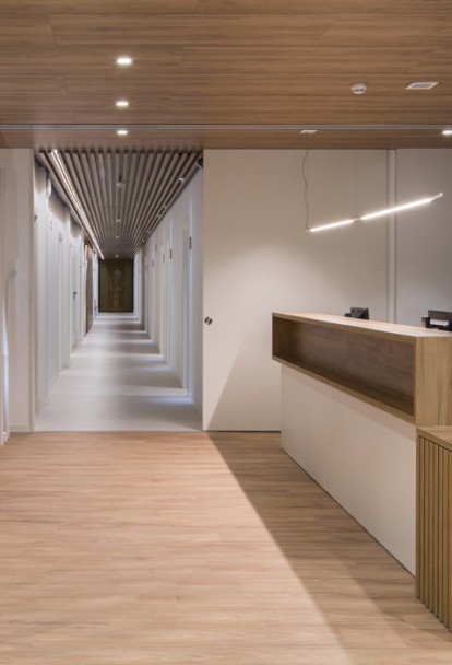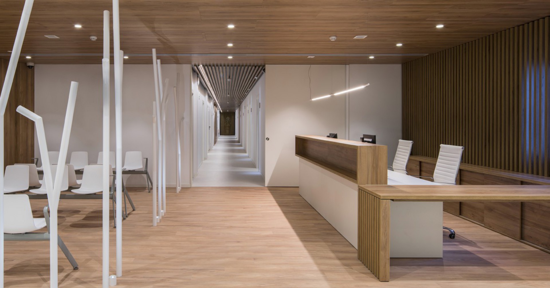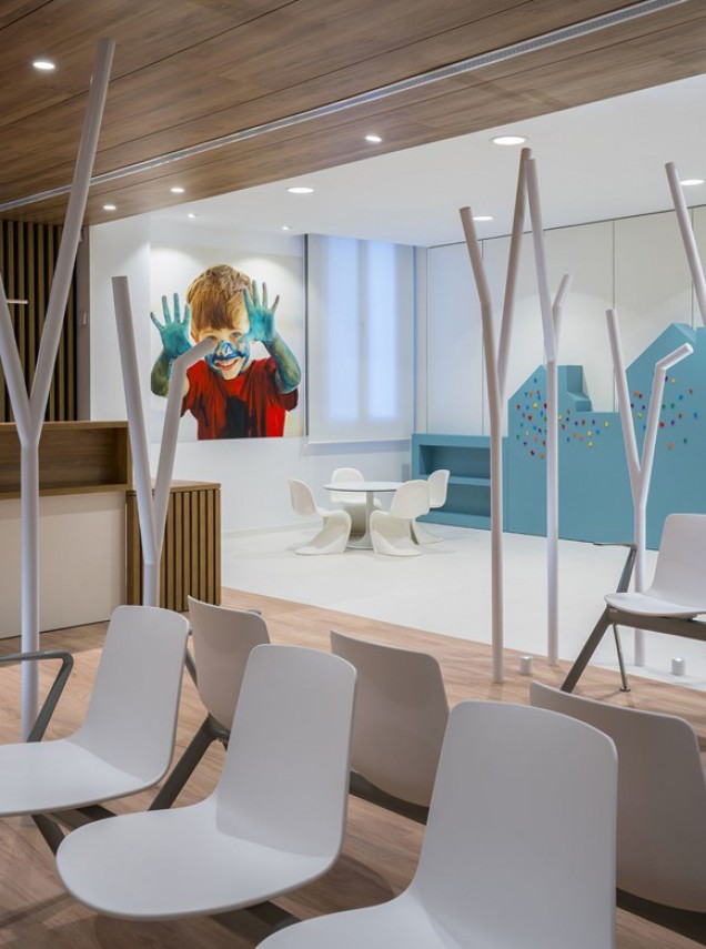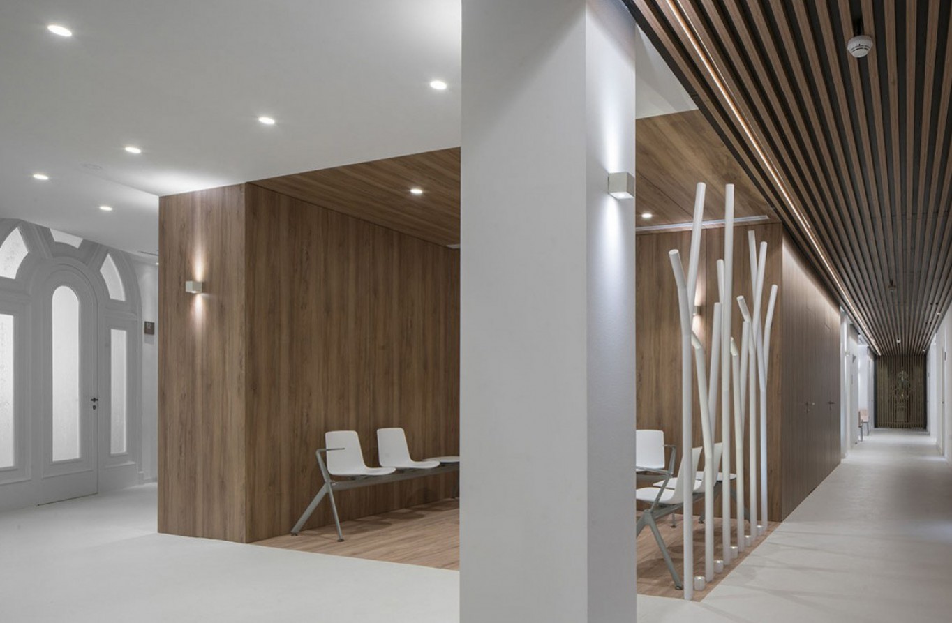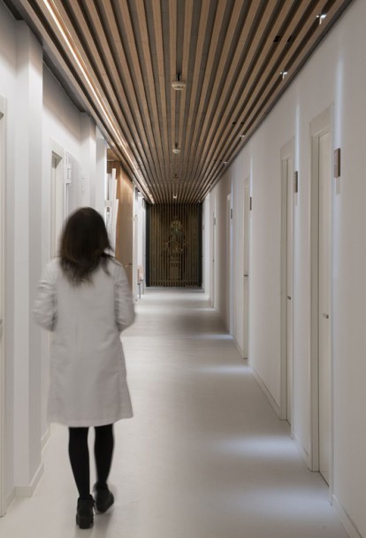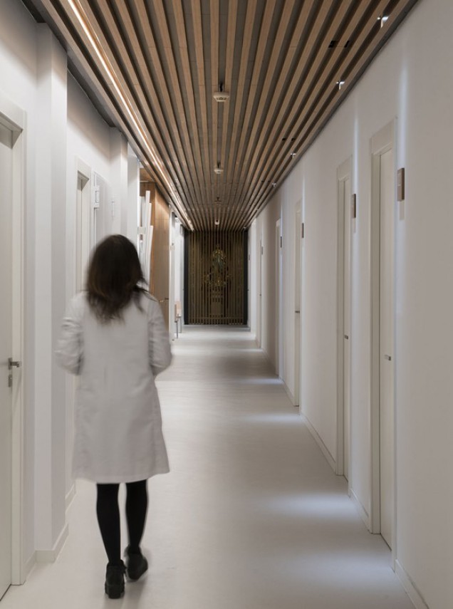 Another nexus is provided by wood, mainly through the ceiling of fine woods that guides us intuitively around the whole clinic.