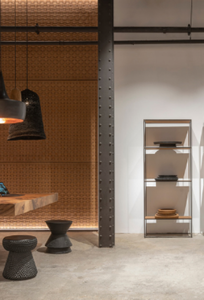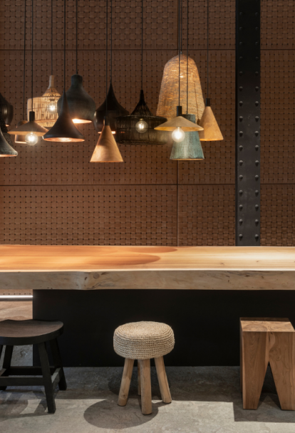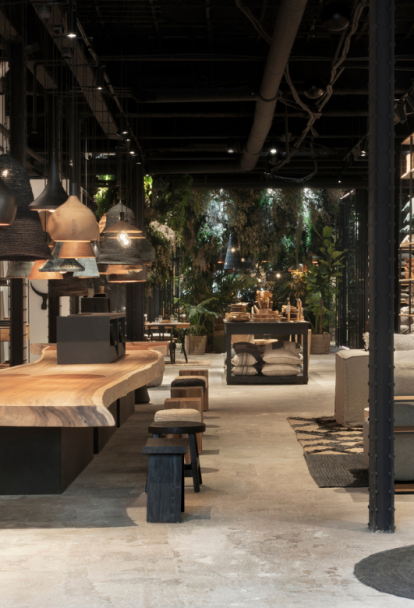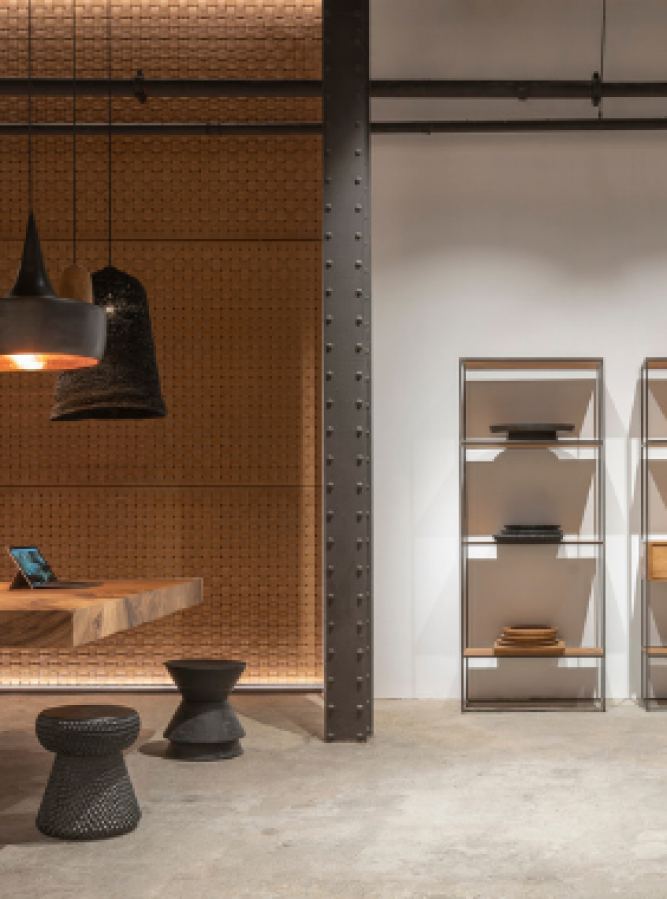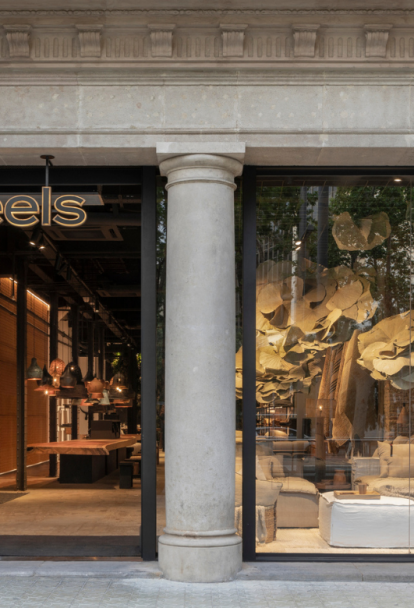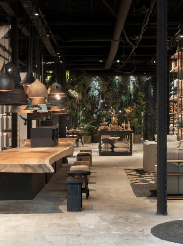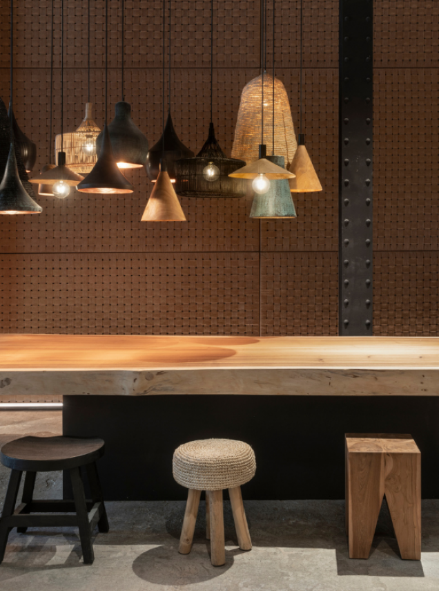 This is literally a living space, where the greatest work is done subtly and effectively by our invisible elements, lighting and nature. Both elements act as changing and mutable protagonists in the service of the essence of the Dareels brand that its founders wanted to convey: the beautifully imperfect reclaimed wood and the artisanal process of all its design pieces.