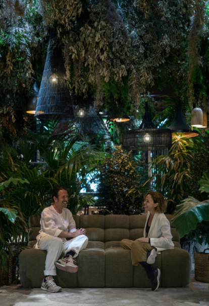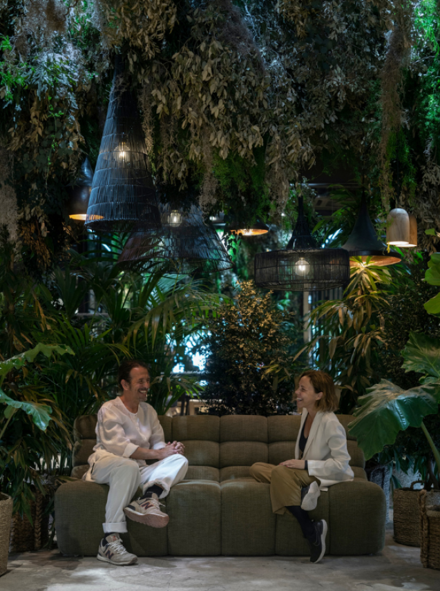 The designer has created three plant-related sensitive points with the floral artist Mireia Abras, as a metaphor and similarity to the heartbeat of nature to introduce it inside the space that expand like oxygen centres.