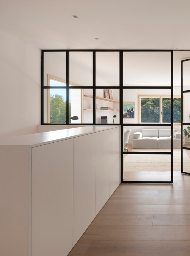All the versatility that the owners sought to give to the ground floor and their desire to share every single corner of their home, we find expressed through a protective intimacy on the first floor.