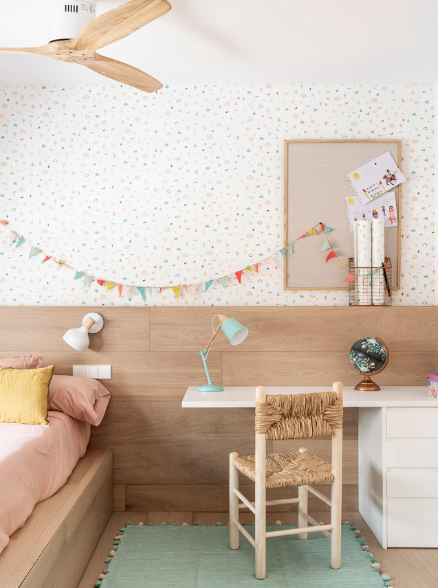 With the same game of symmetries – vertical in this case – on the upper floor, we find the office. A versatile area for study and play that becomes the third living room.