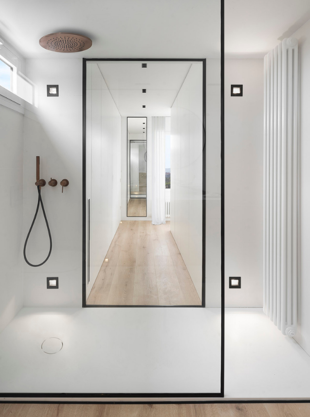 The bathroom opening up to the outside is one of the unmistakable hallmarks of the designer, who gives prominence to this space for wellness and self-care for the entire home.
