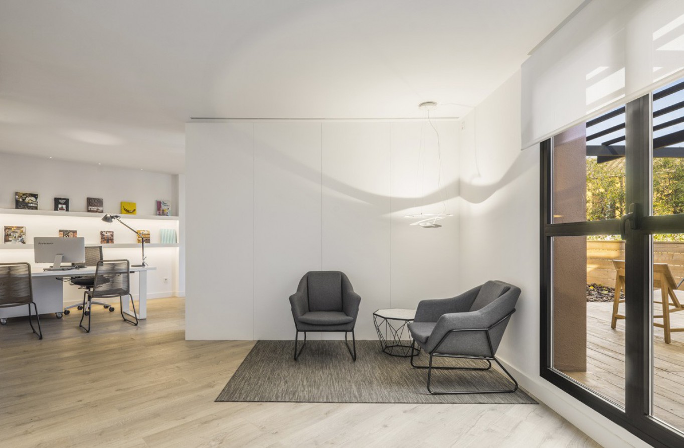 The starting point of the design concept for these offices located in the Baix Empordà was to harness the natural light and construct a space where the lighting would enhance the workers’ peace of mind and concentration.