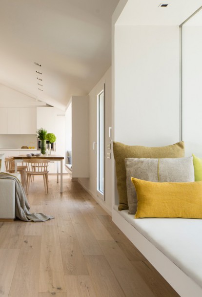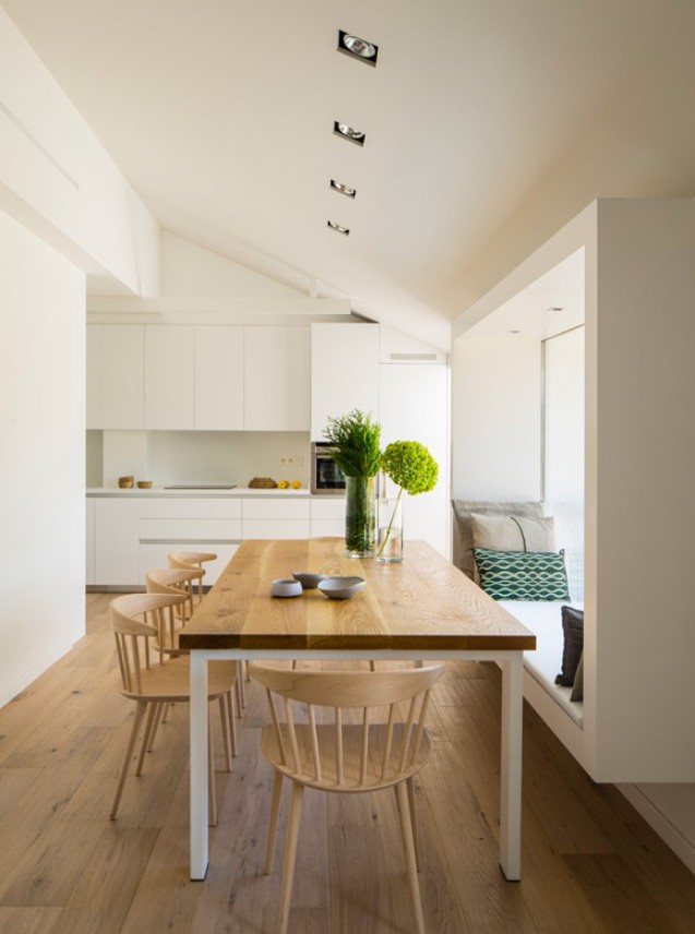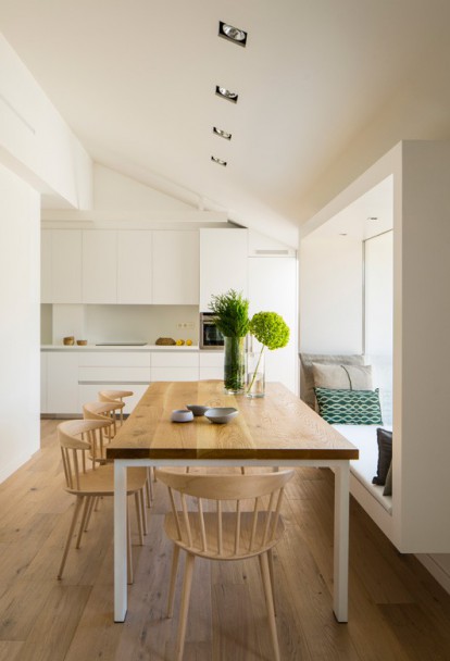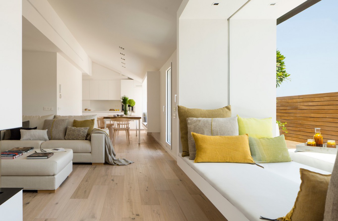 The Catalonian interior architect has designed a diaphanous space that embraces the terrace to convert the top floor into a single in-out volume that integrates both spaces into one essence. Two lacquered MDF cubes create two family intercourse areas – the kitchen and living room in the interior – and two recreation areas in the exterior.d living room in the interior – and two recreation areas in the exterior.