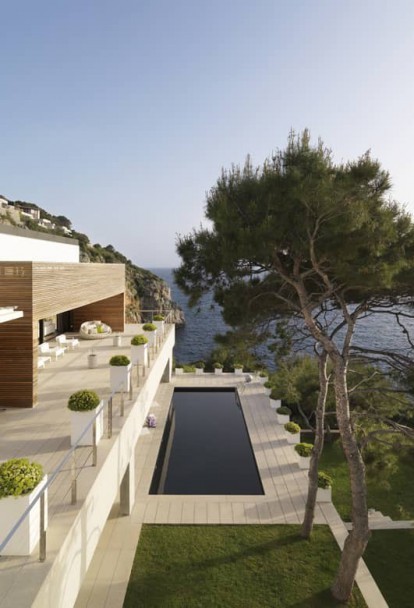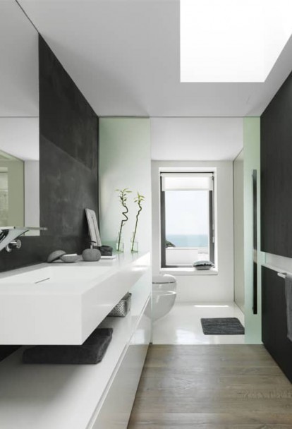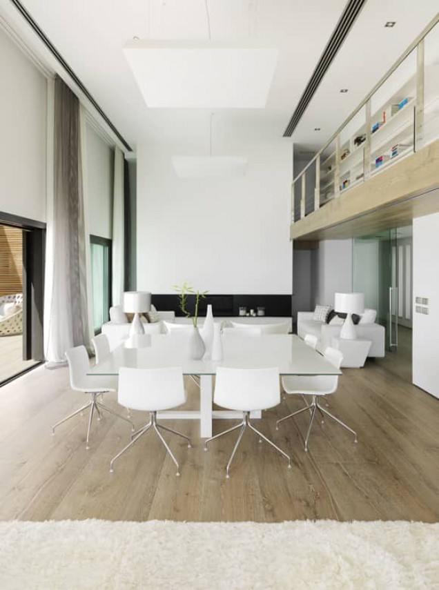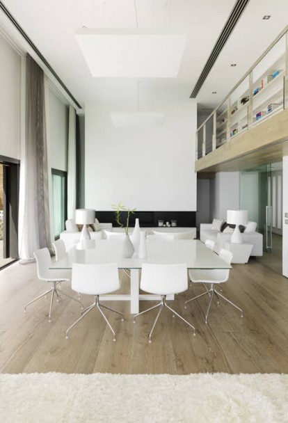 Finally, the guest area on the ground floor next to the swimming pool is floored with the same material as the outdoor to integrate both areas even more, so that fuse in one essence.