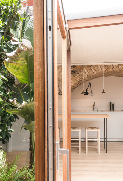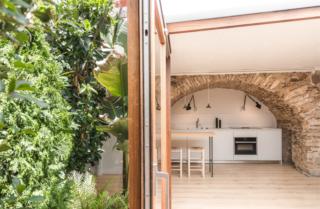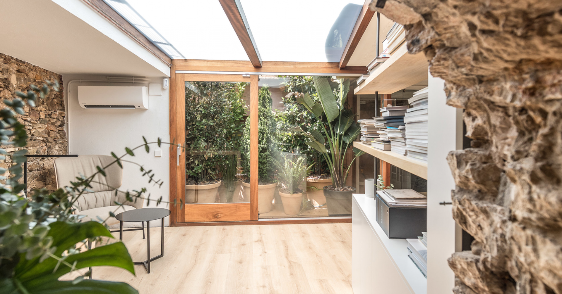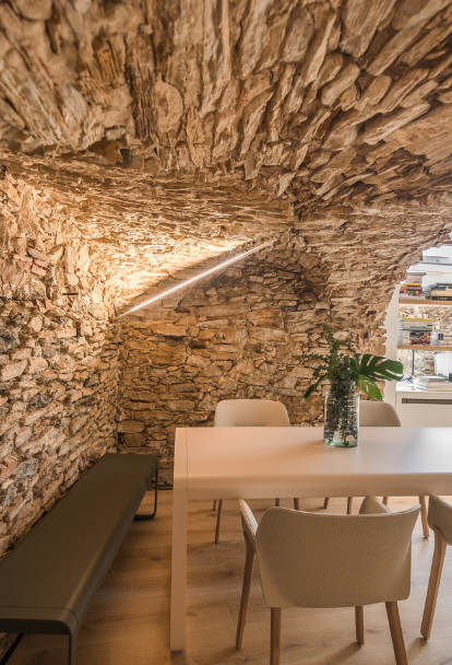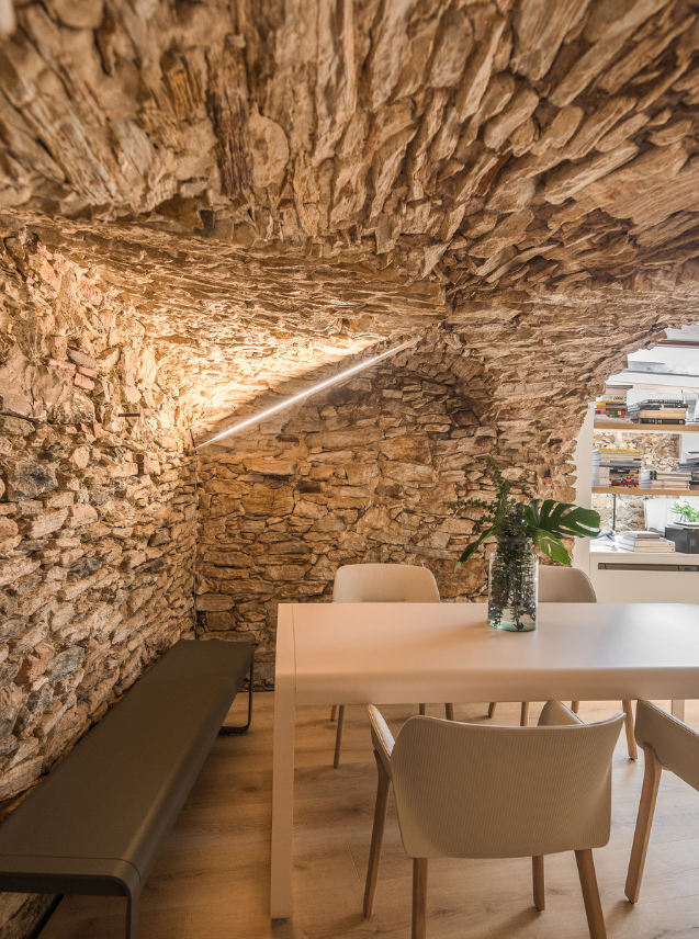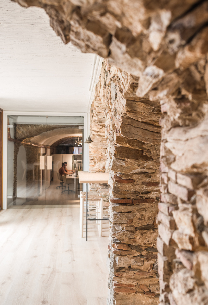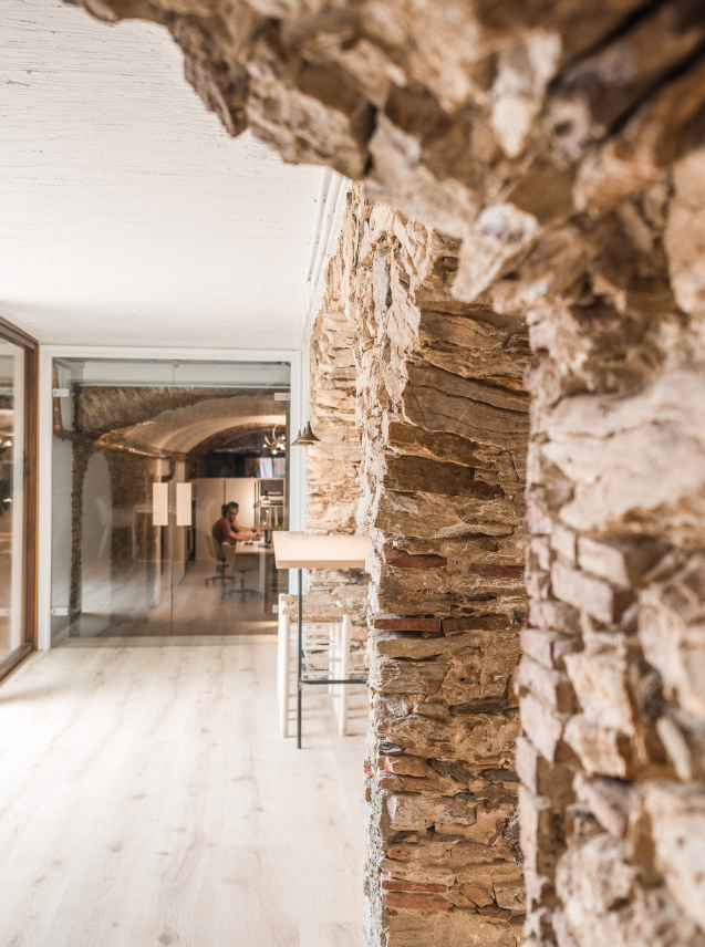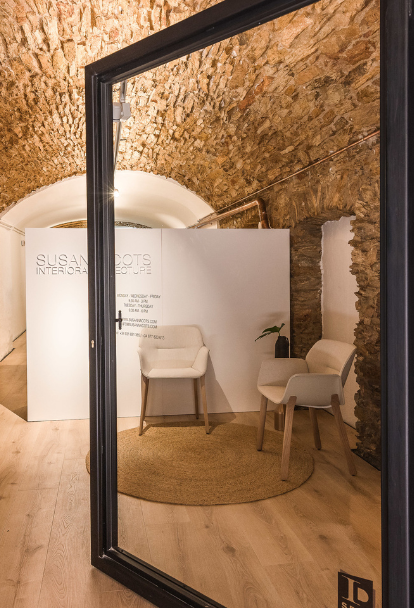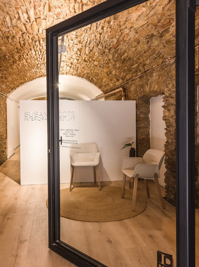 The history hidden behind the walls of this interior design studio in the Empordà can be felt through the stones and a part of the roof in the form of a traditional vault.