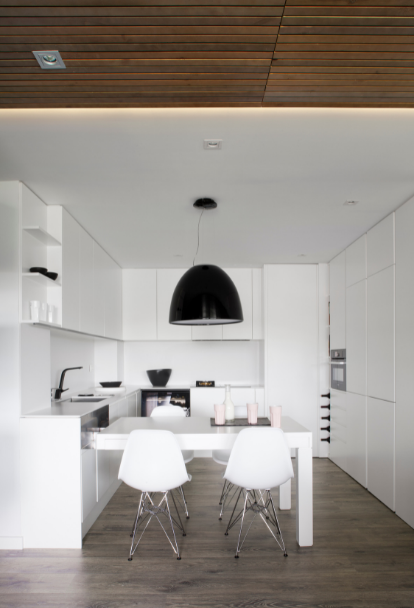 The rest of the space has been projected in white and the rooms have been accessorised with black touches.