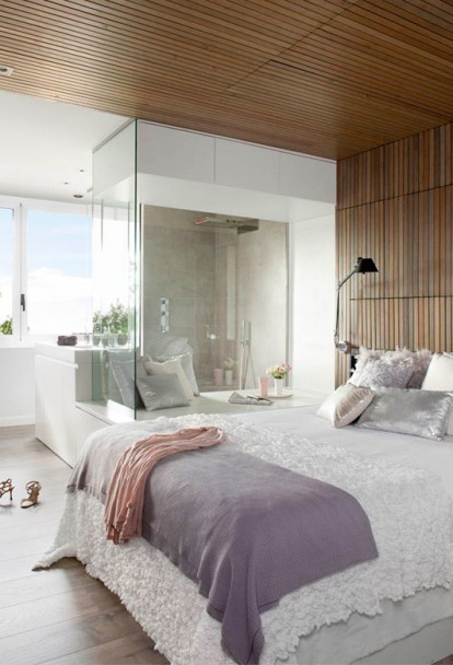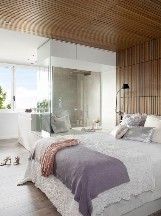 This wooden wrapping continues across the ceiling and separates the living and the water areas inside and outside, and is subtly bathed in natural light in the bathrooms. The warm area reaches the suite defining the sleeping area and finally becoming the bed head.