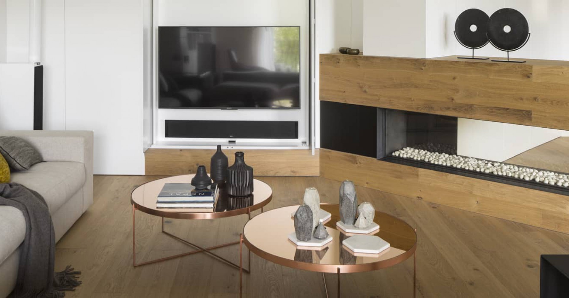 At the same time the designer has used these panels to conceal various rooms such as the courtesy bathroom the main suite and children’s rooms.