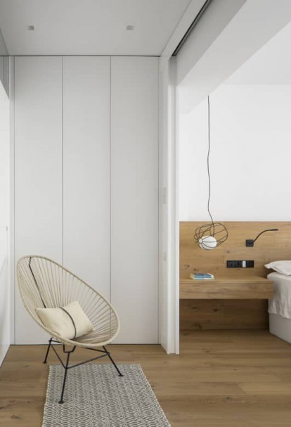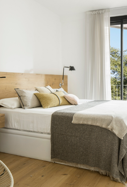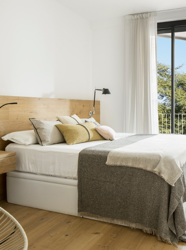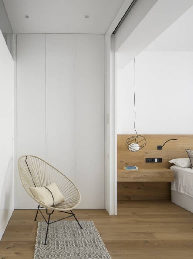 Composed of four rooms, the design of the sleeping area brings together two basic materials: oak and white enamel paintwork. On the one hand, both the parquet and the platforms and furnishings are finished in wooden planks by the Italian firm Listone Giorano. In contrast, the clarity and lightness of these rooms is due to the white enamel paintwork. The combination achieves a timeless effect where tranquillity and serenity find, at last, their place in the Catalonian capital.